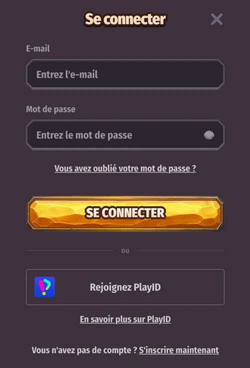 Appuyez sur “Connexion”, saisissez votre email et votre mot de passe, et accédez à votre profil en quelques secondes.